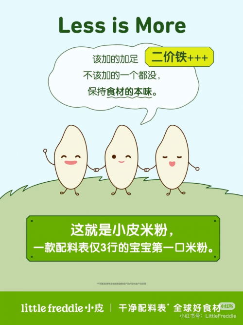 Less is More,该加的加足,不改加的一个都没,保持食材的本味。这就是小皮米粉,一款配料表仅3行的宝宝第一口米粉。
