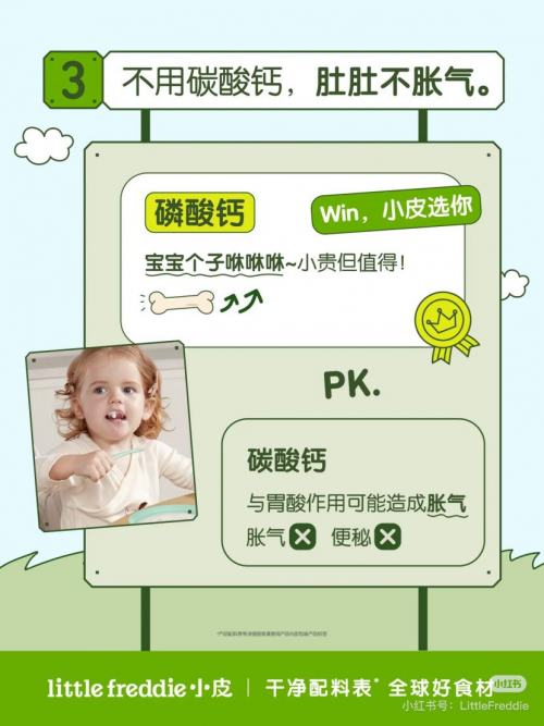 碳酸钙与胃酸作用可能造成胀气。因此小皮选择添加小贵但值得的磷酸钙。