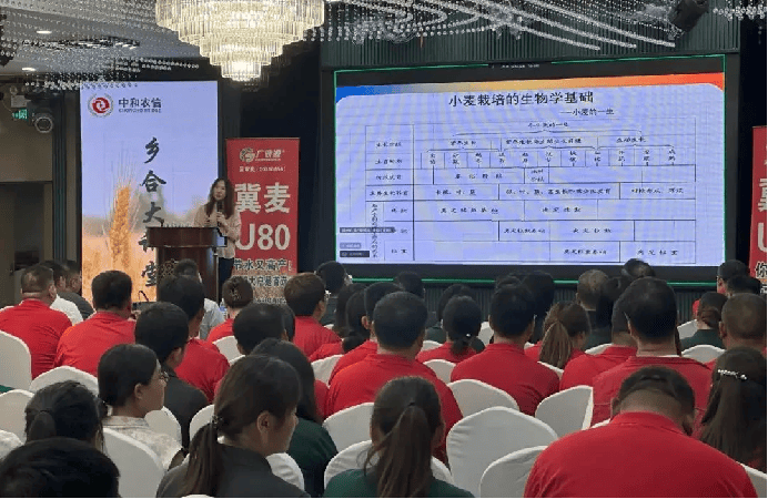 在冬小麦启动会环节,中和农信河北区域运营经理张建磊进行了深入的业务部署。她详细解读了今年冬小麦种植期的业务规划,明确了冬小麦种植的服务宗旨与行动指南,有效提振了参会同事的信心,现场反响热烈。